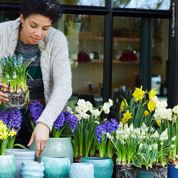Zwiebelblumen sind nicht nur etwas für Hobbygärtner mit Garten. Sie können Ihre Leidenschaft für das Zwiebelgärtnern auch auf Balkon oder Terrasse ausleben. Im Herbst können Sie mit wenigen Handgriffen Töpfe, Kübel und Kästen bestücken. Achten Sie auf Wasserabzugslöcher im Behälter, denn Staunässe ist Gift für Blumenzwiebeln. Wählen Sie größere Töpfe und Kübel, so können Sie sich beim Pflanzen kreativ austoben. Wer farblich und zeitlich geschickt vorgeht, der darf einen tollen Frühlingsbalkon erwarten.