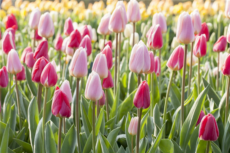 Für ein farbenfrohes Spektakel, den ganzen Frühling lang, sorgen natürlich Tulpen (Tulipa). Sie bieten eine Fülle von Verwendungsmöglichkeiten, denn es gibt sie nicht nur in fast allen Farben des Regenbogens, sondern auch in den unterschiedlichsten Größen und Formen. Manche Tulpen begeistern durch ihre geflammten, gefüllten oder gefransten Blüten. Experimentieren und mischen Sie nach Herzenslust! Geben Sie sich ganz der herbstlichen Zwiebelliebe hin! Es lohnt sich – das nächste Frühjahr kommt bestimmt.