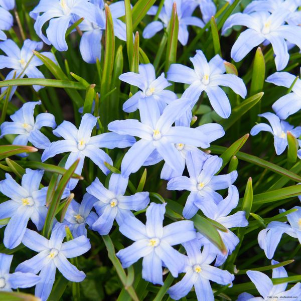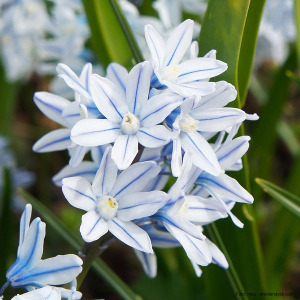 Für schattigere Standorte bietet sich der frühblühende Sibirische Blaustern (Scilla siberica) an, der zwar nur 10 - 15 cm hoch wird, aber dafür flächenhaft erscheint. Kleine, glockenförmige Blüten verschönern Natur-, Stein- und Topfgärten auf zauberhafte Weise. Er eignet sich besonders für kiesige und lehmige Untergründe. Ihn gibt es auch als weißblühende Sorte. Ebenfalls eine attraktive Nektarblume ist die lavendelblaue Gewöhnliche Sternhyazinthe (Chionodoxa luciliae), auch bekannt unter dem Namen „Schneeglanz“. Großflächige Unterpflanzungen wirken äußerst dekorativ. Von ihr wird durchlässiger, sandiger Boden bevorzugt – am besten an sonnigen Stellen. Im Steingarten gedeiht der filigrane Kugel-Lauch (Allium sphaerocephalon) besonders gut. Seine purpurroten kugelförmigen Blütenköpfe bieten im Sommer der Maskenbiene sowie der Hummel oder Tagfaltern wichtige Pollennahrung. Im Oktober bzw. November werden die Zwiebeln mit Abstand und Tiefe von jeweils 10 cm gepflanzt. Die zarte, aber robuste, winterharte Puschkinie (Puschkinia scilloides var. libanotica) versprüht ihren ganzen Charme in der Sonne und im Halbschatten. An einem Stiel sitzen bis zu 12 glockenförmige, porzellanblaue Blüten.