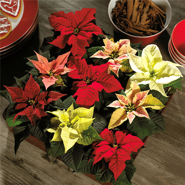 Für die farbenfrohen Weihnachtsfans gibt es mittlerweile eine riesige Auswahl an Weihnachtssternen die Hochblätter in allen Farbabstufungen von Rot bis Weiß tragen. Auch panaschierte, gestreifte oder mehrfarbige Exemplare werden immer öfter gesehen.