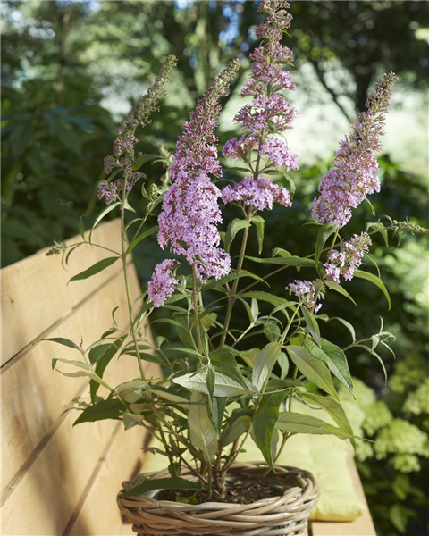 Der Sommerflieder (Buddleja davidii) stammt ursprünglich aus China und wird wegen seiner enormen Anziehungskraft auf Schmetterlinge auch Schmetterlingsflieder genannt. Im Übrigen besteht kein Verwandtschaftsverhältnis zum echten Flieder. Da seine Blüten dem aber sehr ähnlich sehen, bekam die Pflanze diesen Namen. Der schnell wachsende Strauch mag halbschattige bis sonnige Standorte am liebsten. Schneiden Sie verblühte Rispen ab, damit sich der Sommerflieder nicht unkontrolliert im Garten ausbreitet. Es gibt auch Sorten, die keinen Samen bilden.