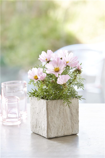 Steht das Schmuckkörbchen (Cosmos bipinnatus) so sonnig wie möglich, bietet es Bienen bis in den Herbst hinein Nahrung. Die Zierpflanze ist vielseitig einsetzbar: im Beet, im Blumenkasten oder als Solitärstaude in einem großen Kübel. Ihr natürliches Erscheinungsbild macht sie besonders attraktiv. Die Blüten in Weiß, Rosa und Rot sitzen an langen dünnen Stielen mit zartem Laub – perfekt auch für die Vase.