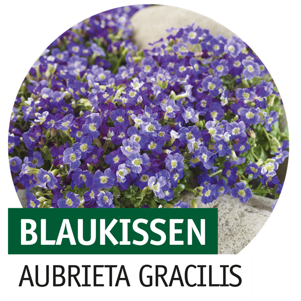 • Blüten: Leuchtend blau, violett oder rosa, dichte Blütenteppiche