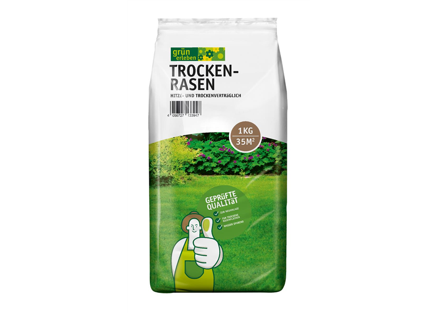Grün erleben TROCKENRASEN ist ein speziell für trockene Standorte entwickelte Gräsermischung. Diese ist eine optimale Mischung für Gärten, die nur eingeschränkt beregnet werden. Durch den hohen Anteil von verschiedenen Schwingelgräsern (Festuca-Arten) zeigt diese Mischung bei Trockenphasen deutlich länger eine ansprechend grüne Fläche als normale Spiel- und Sportrasenmischungen. Neben der Trockenheitsverträglichkeit zeichnet eine hohe Narbendichte und sehr feine Blätter diese Mischung aus, eine Belastbarkeit ist bei entsprechender Pflege ebenfalls gewährleistet. Nachsaaten sollen mit der gleichen Mischung (grün erleben TROCKENRASEN) erfolgen. Bei einer Verfilzung der Rasenfläche ist vor der Nachsaat vertikutieren empfehlenswert.